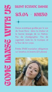 L’ecstatic dance, c’est une pratique de danse libre — sans chorégraphie, sans jugement, sans règles. On bouge comme on veut, comme on ressent, comme on est. C’est un espace de liberté totale où le corps reprend la parole.